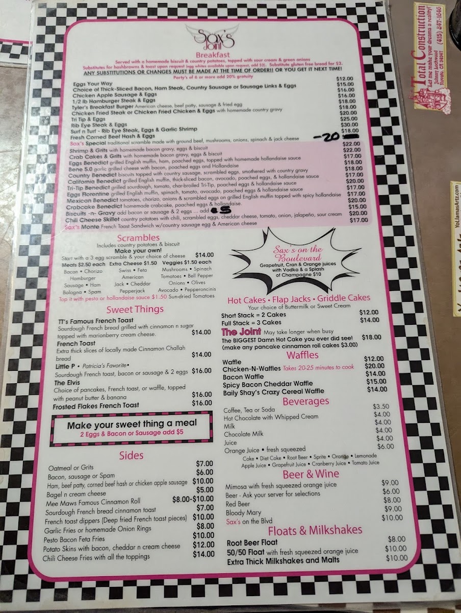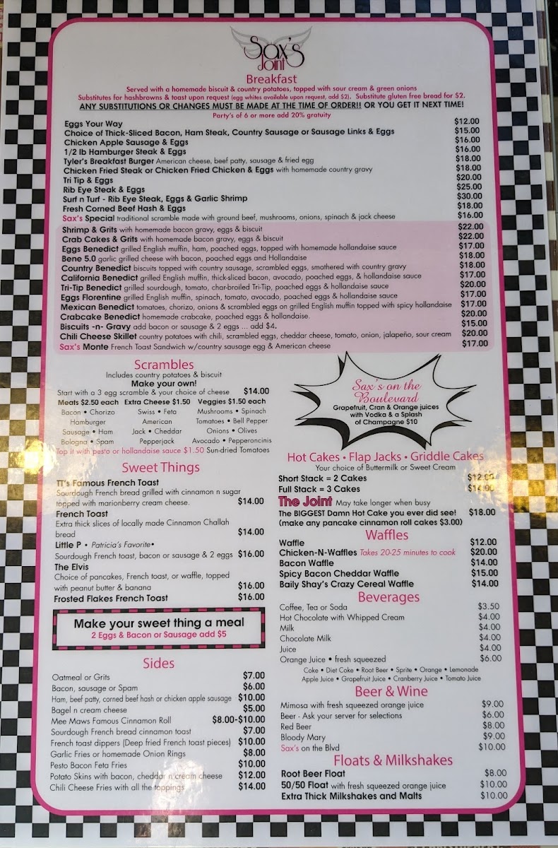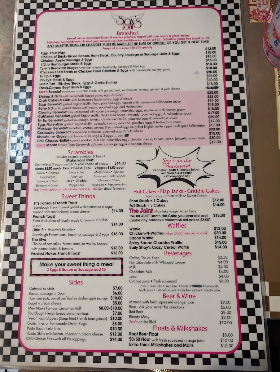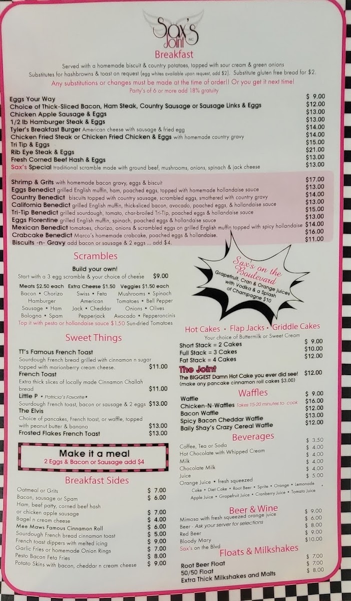 So whether you’re in for a relaxing brunch with friends or a quick breakfast before your day begins, Sax's Joint promises hearty dishes, exceptional service, and an undeniable local charm that’s hard to resist. Get ready to savor all that breakfast has to offer—your taste buds won’t regret it!