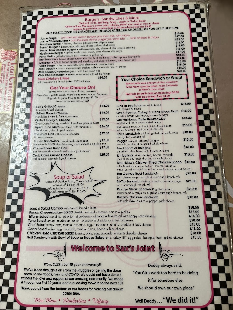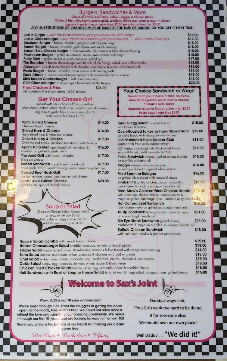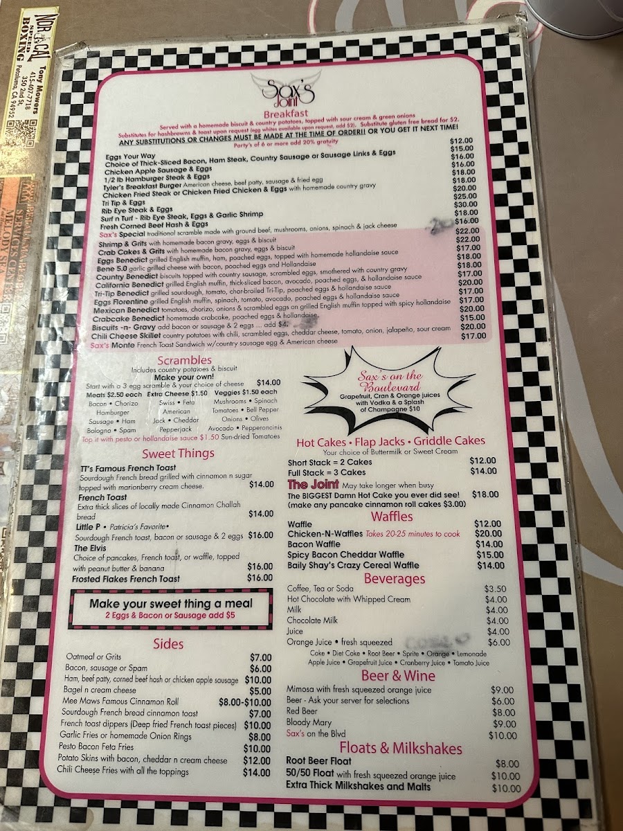 The ambiance at Sax's Joint is reminiscent of a cozy 1950s diner, with its small but inviting interior and charming outdoor seating that’s perfect for sunny mornings. As you step inside, the hustle and bustle of the lively atmosphere, accompanied by the friendly greetings from the staff decked out in retro-inspired attire, instantly makes you feel at home. This is not just about the food; it’s about the experience!